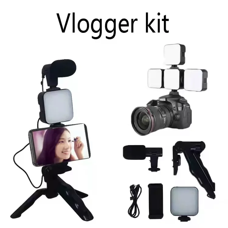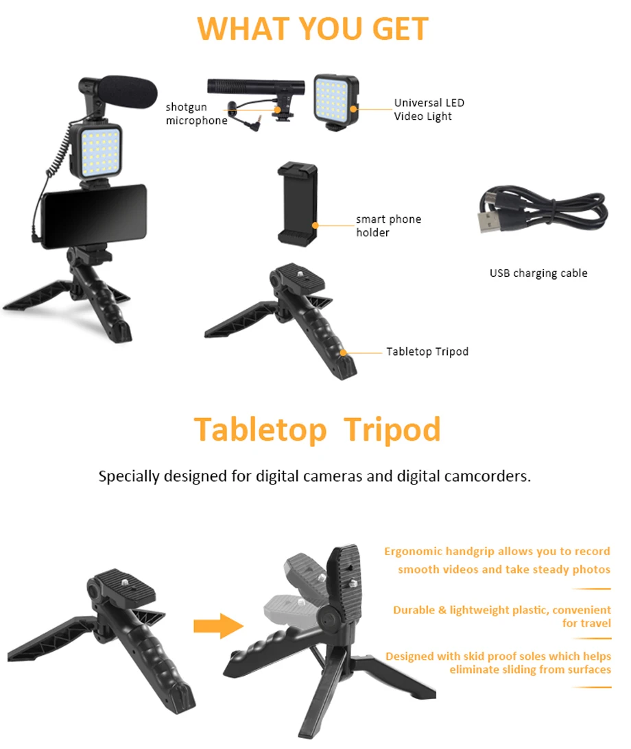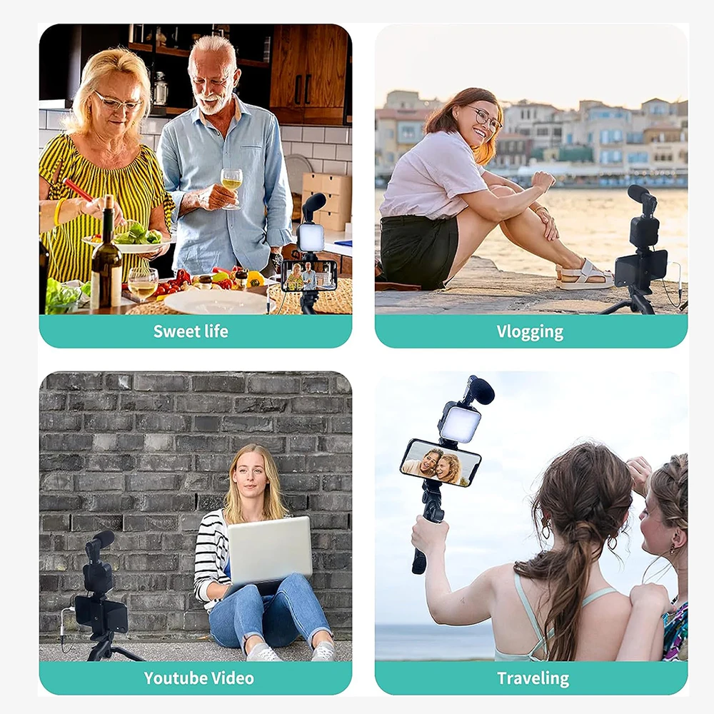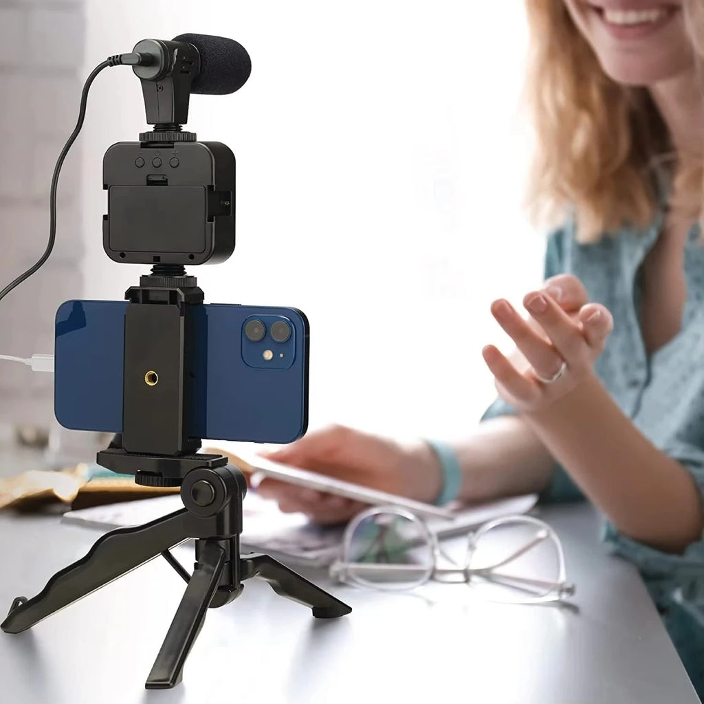 5-in-1 Video Making Kit – Light, Microphone, Tripod, and Phone Holder.