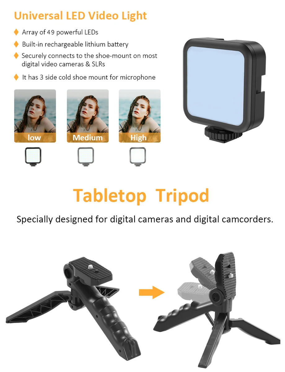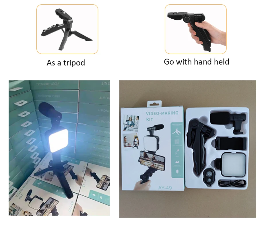 5-in-1 Video Making Kit – Light, Microphone, Tripod, and Phone Holder. Everything you need to create videos like a pro!